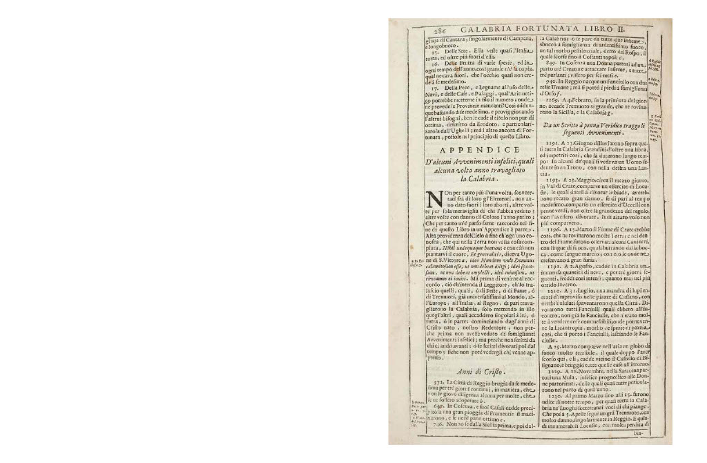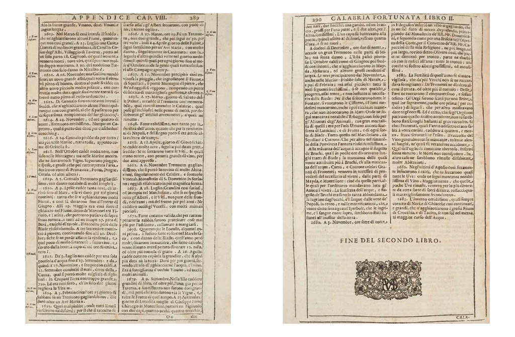 The volume "Il Filosofo e la Catastrofe, un terremoto del '700" (A. Placanica, 1985) collects the testimonies of the missions that, in the aftermath of the 1783 earthquake, were sent by the Kingdom of Naples to offer assistance to the affected populations.