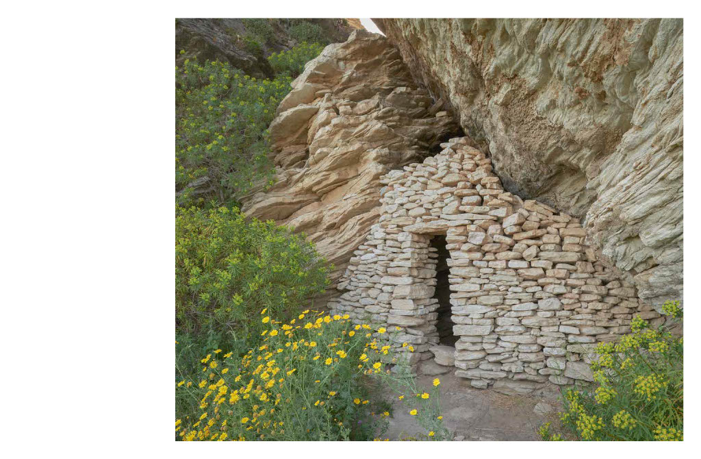 To navigate within this "landscape", it is necessary first and foremost to free oneself from any spatial and temporal coordinates, in order to grasp the symbolic essence of the relationship between man and nature. And it is no coincidence that the archetypal element of this landscape is constituted by stone, by bare rock, which over the centuries has provided refuge to monks and hermits who, fleeing from anti-Christian persecutions, left behind the things of this world to abandon themselves to an ancestral relationship of fusion with the natural element.